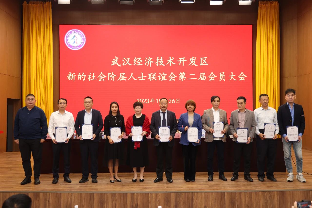 武汉经开区知联会法人代表邓爱荣代表区各民主党派、统战团体致辞,大会听取了《武汉经开区新的社会阶层人士联谊会第一届理事会工作报告》,审议通过了《武汉经开区新的社会阶层人士联谊会章程(草案)》、《武汉经开区新的社会阶层人士联谊会会费管理办法(草案)》、《武汉经开区新的社会阶层人士联谊会第二届会员大会选举办法(草案)》。